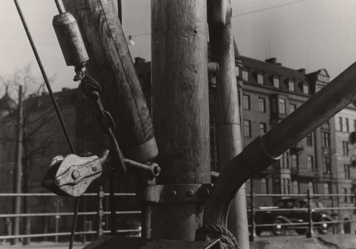Titel: Fartyget vid Djurgårdsbron i Stockholm vintern 1946-1947.