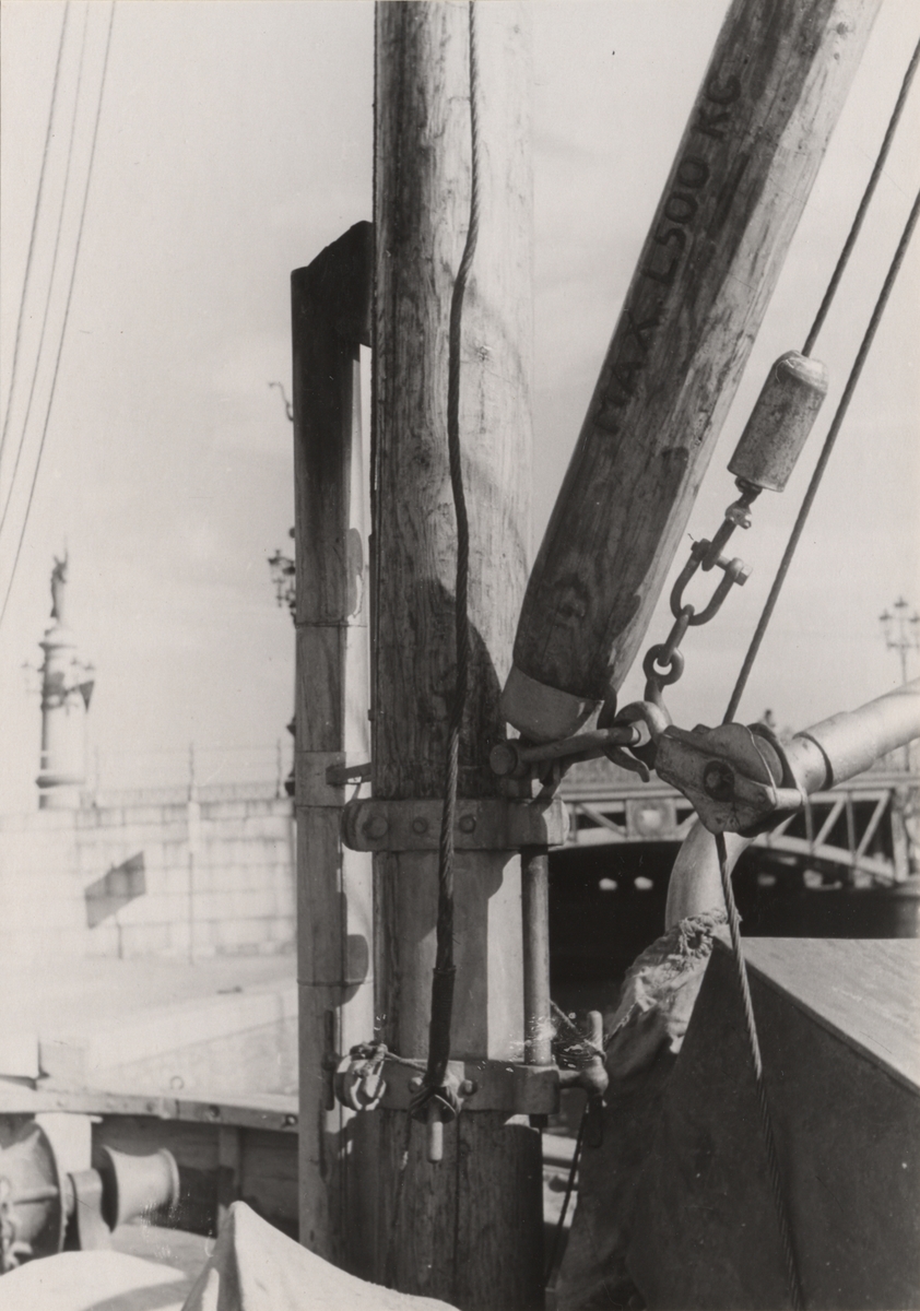 Fartyget vid Djurgårdsbron i Stockholm vintern 1946-1947.