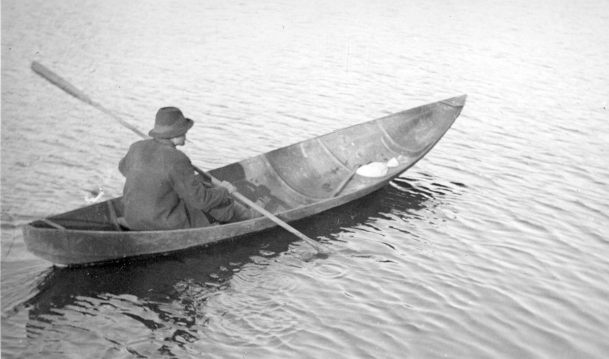 Båtmästare Isak Juhola i en äsping som han byggt. Gåva av Institutet för folklivsforskning 1953. tryckt i Folk-Liv 1947