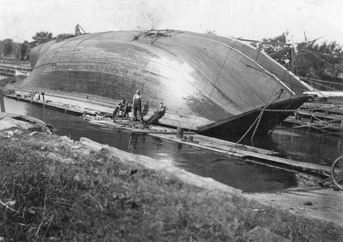 Kölhalning av segelfartyg på Vikens varv 1925.