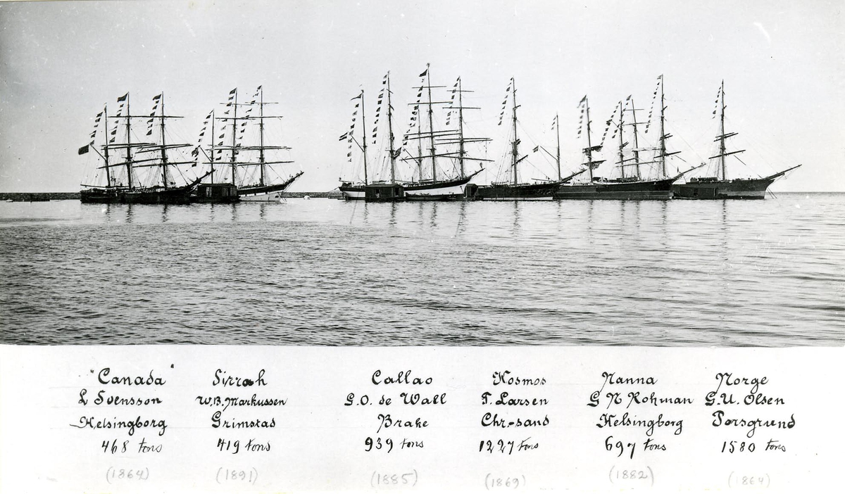Långtradare liggande i Harnäs hamn i augusti månad år 1902, lastande trä.