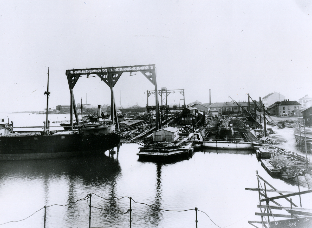 Oskarshamns varv. Lastångfartyget ATAIR utanför bäddarna.