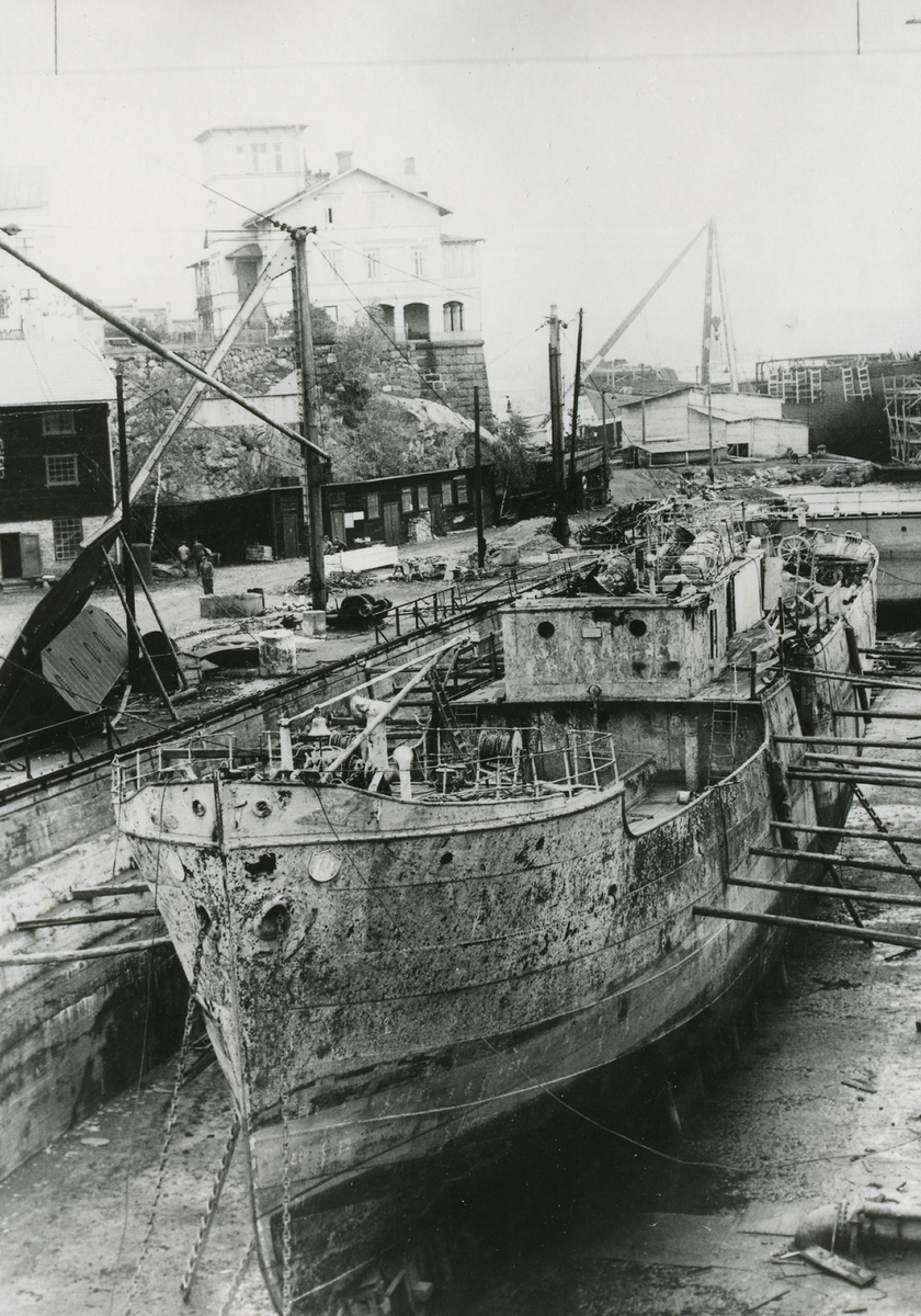 Oskarshamns varv. Lastångfartyget STOCKHOLM av Hamburg i oktober 1943.