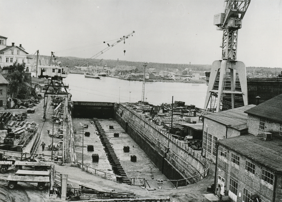 Oskarshamns varv. Vy över varvsområdet i augusti 1958.