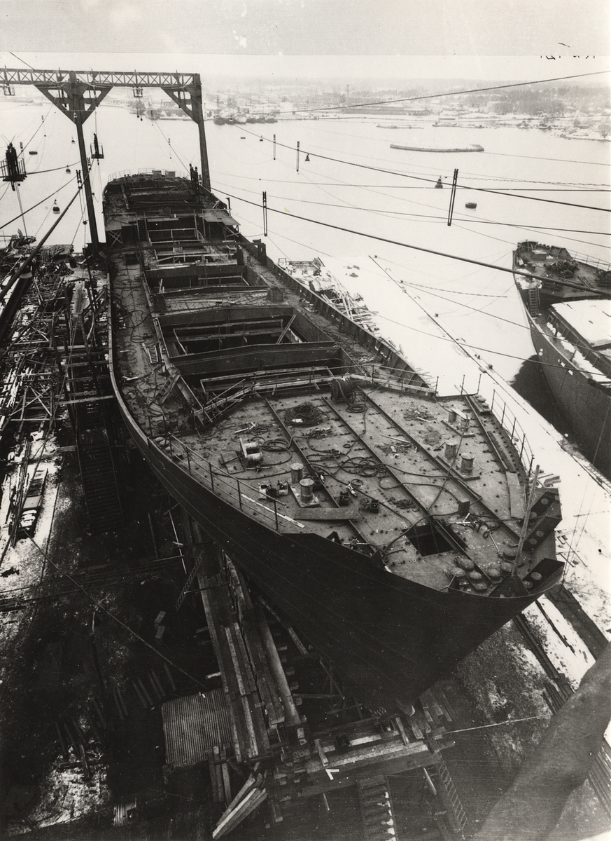 Oskarshamns varv. Torrlastfartyget BRARENA under byggnad. Nybyggnadsnummer 303.