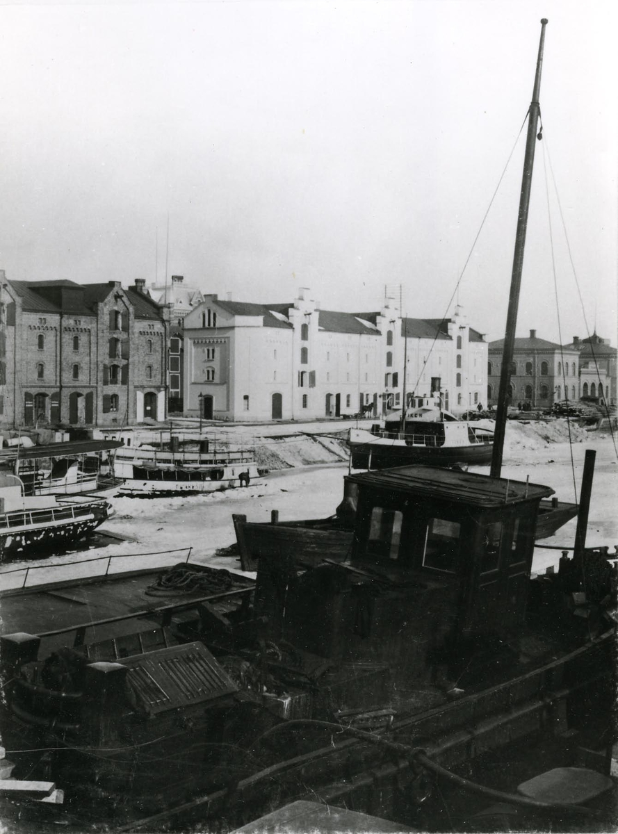 Vinterbild från hamnen, mars 1901. Längst till höger ligger tullhuset.