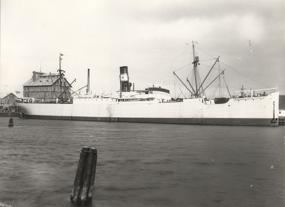 Lastångfartyget KRONPRINSESSAN VICTORIA av Stockholm liggande i Åhus hamn omkr. 1918.
