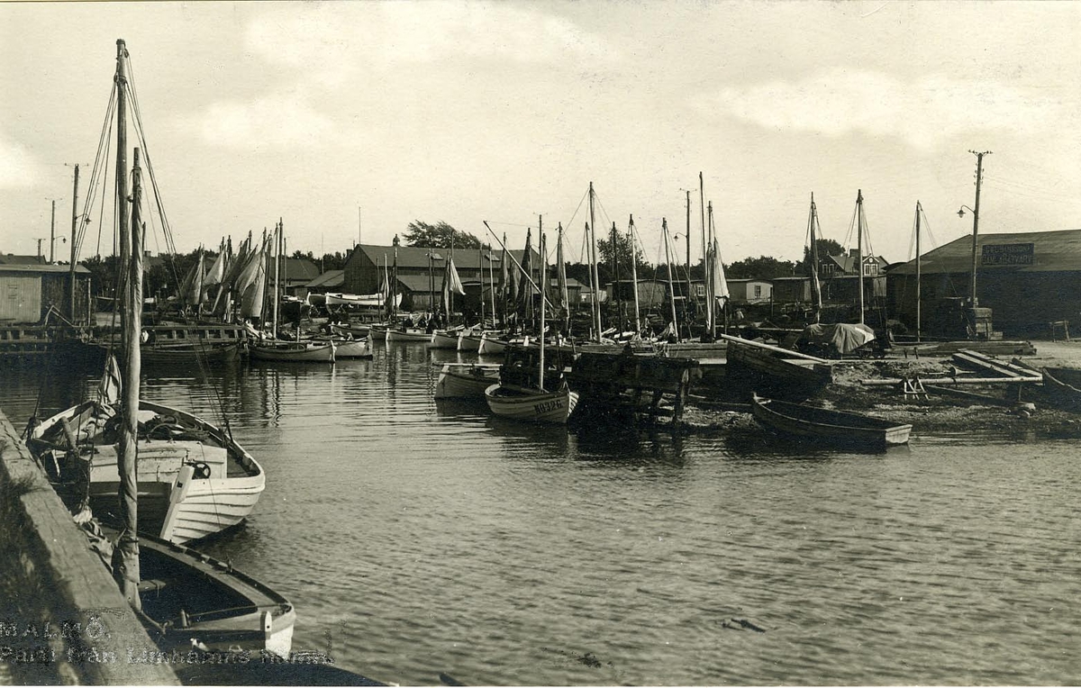Foto av en del av Limhamns fikehamn på 1950-talet.