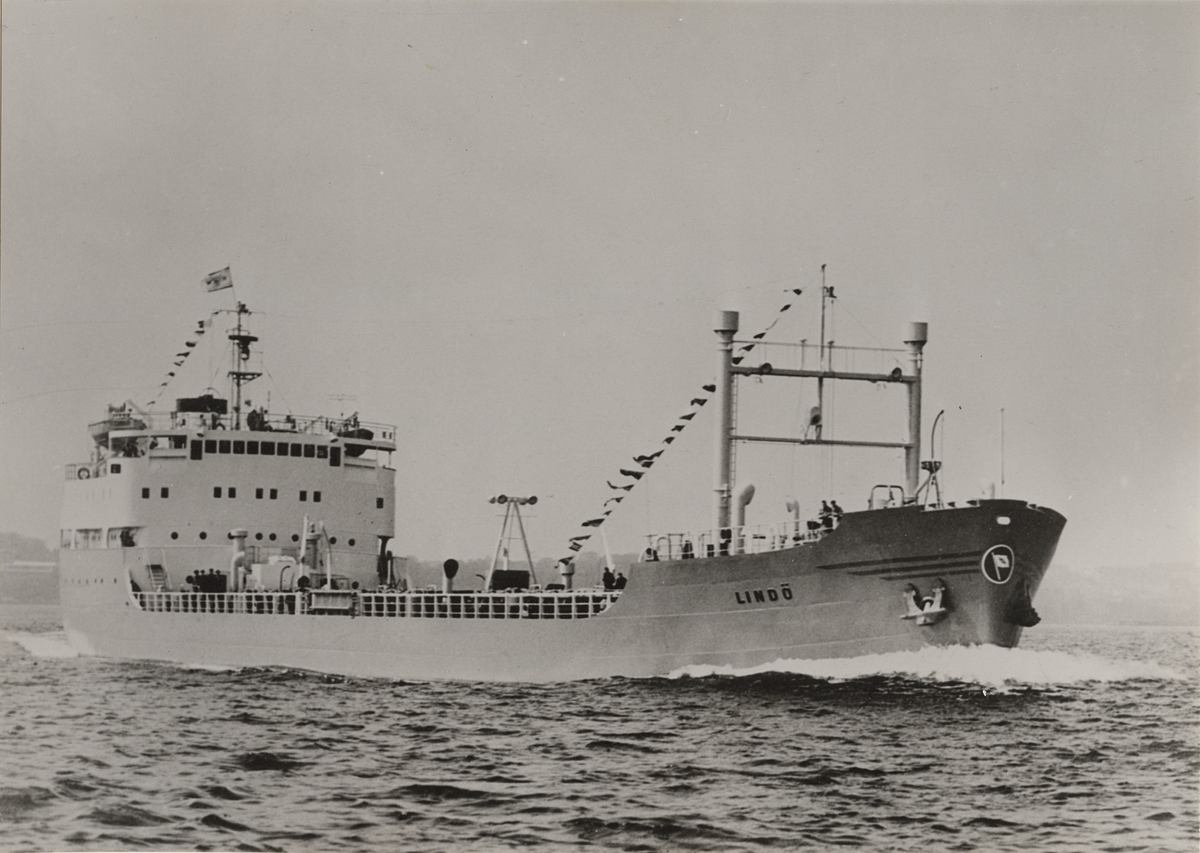 Tankmotorfartyget LINDÖ av Stockholm. Foto 1957, under provturen.