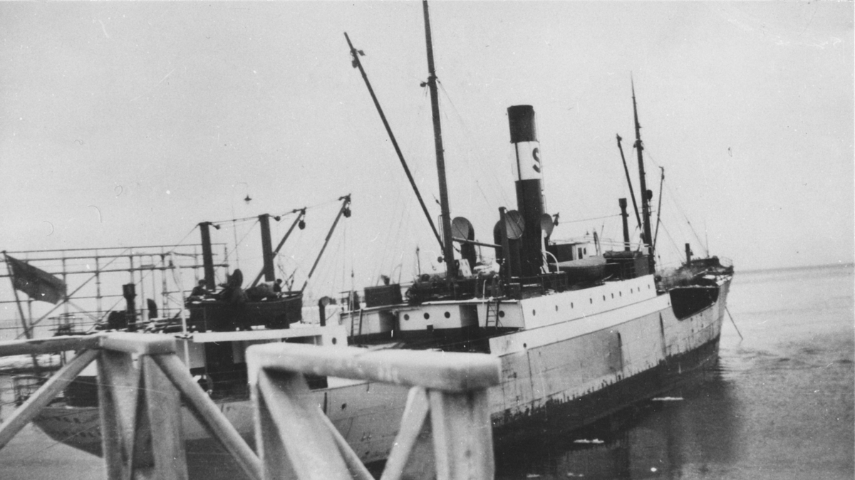 Lastångfartyget MJÖLNER i Bureå hamn.