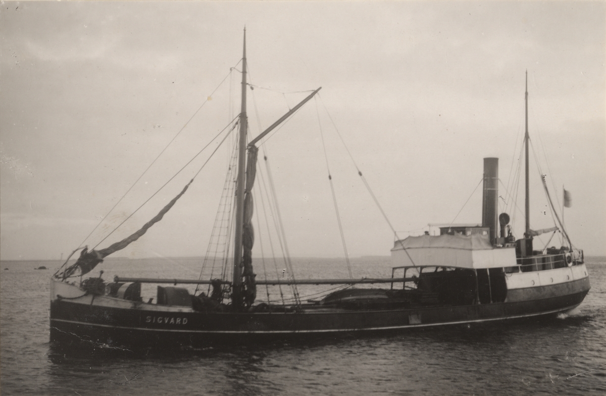 Lastångfartyget SIGVARD av Stockholm. Fartyget på ingående till Åhus 1918.