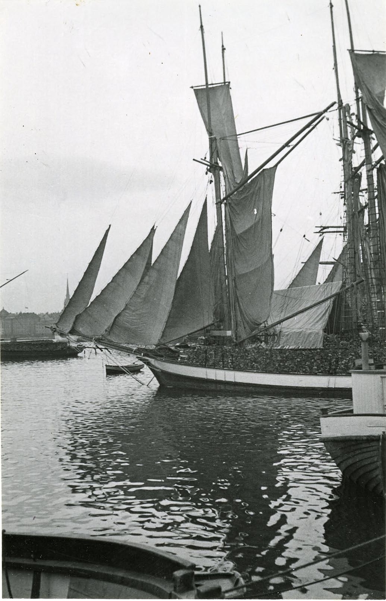 Foto i svartvitt visande Strandvägskajen, Stockholm, 1934.