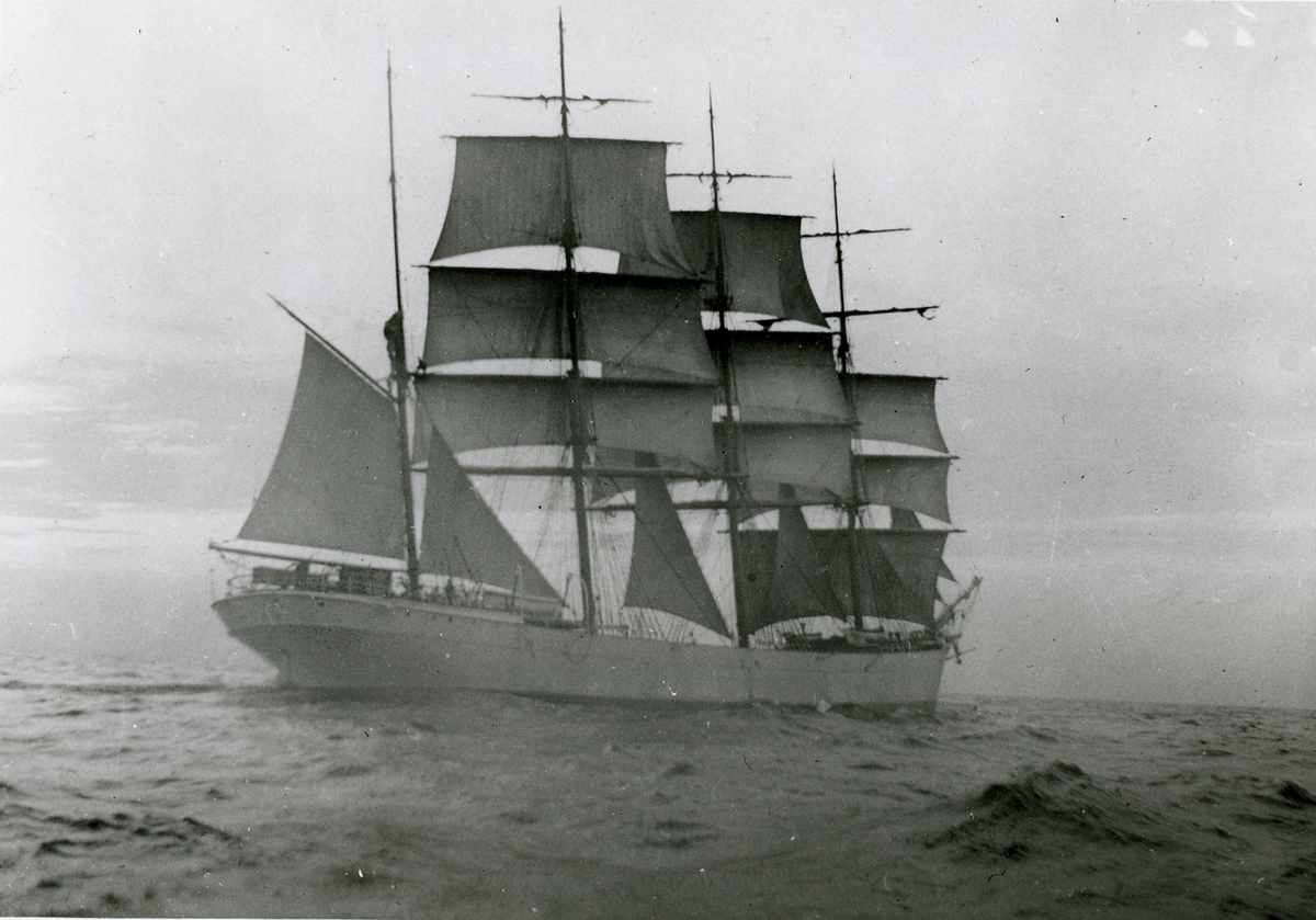 Finsk obekant 4-m barkskepp passerande Grundkallens fyrskepp hösten 1913