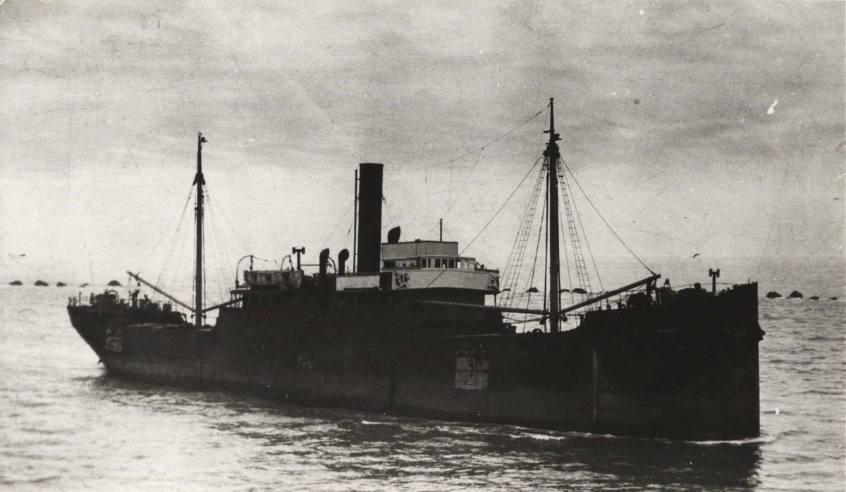 Lastångfartyget RUMNEY av Cardiff, fotograferad i Matosinhos, Portugal, i januari 1951.