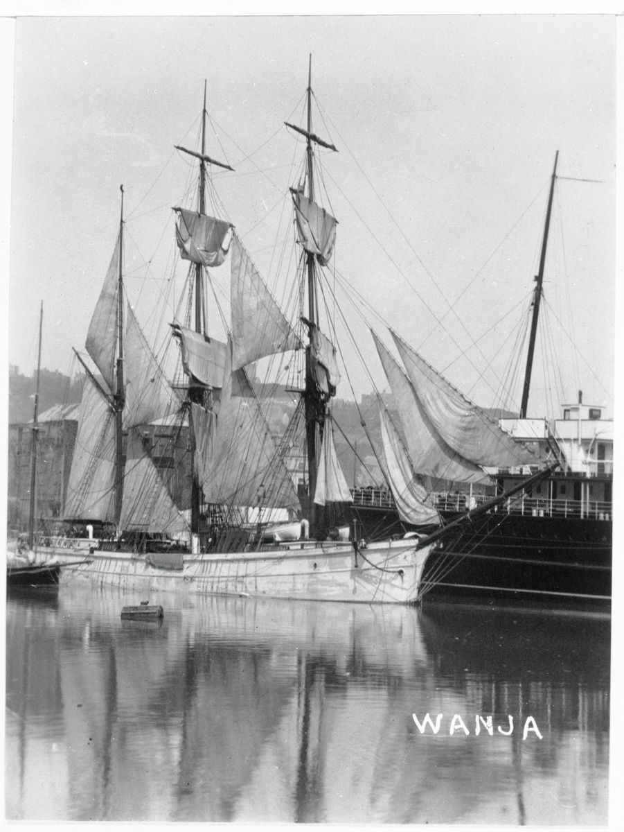 Två foton av 3-mast barken Vanja av Hälsingborg liggande i Dovers hamn omkr. 1914