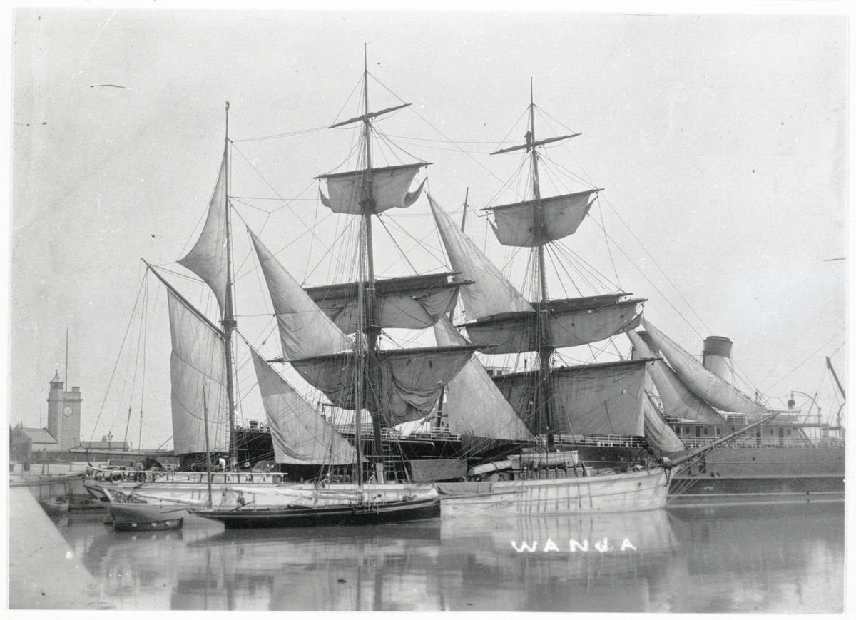 Två foton av 3-mast barken Vanja av Hälsingborg liggande i Dovers hamn omkr. 1914