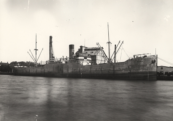 Lastångfartyget FAXEN av Göteborg i Åhus hamn, år 1923.