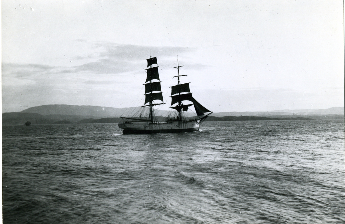 Briggen Fremad av Drammen under segel. Foto [i] Kristianiafjord 1906