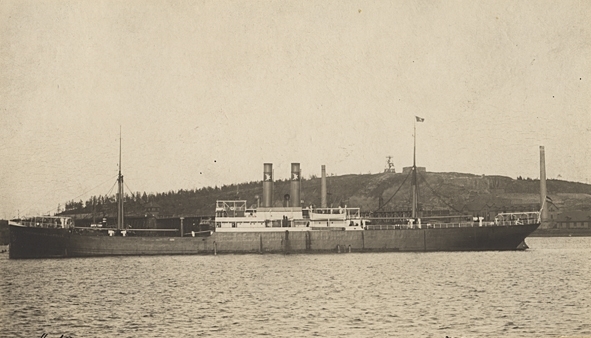 Lastångfartyget BURGERMEISTER VON MELLE av Hamburg. Fotot taget efter flottagning från Rödkallen år 1917 av Neptunbolaget.