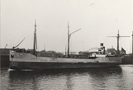 Lastmotorfartyget ALCA av Malmö. Fartyget vid ankomsten till Neufahrwasser 8 april 1924.