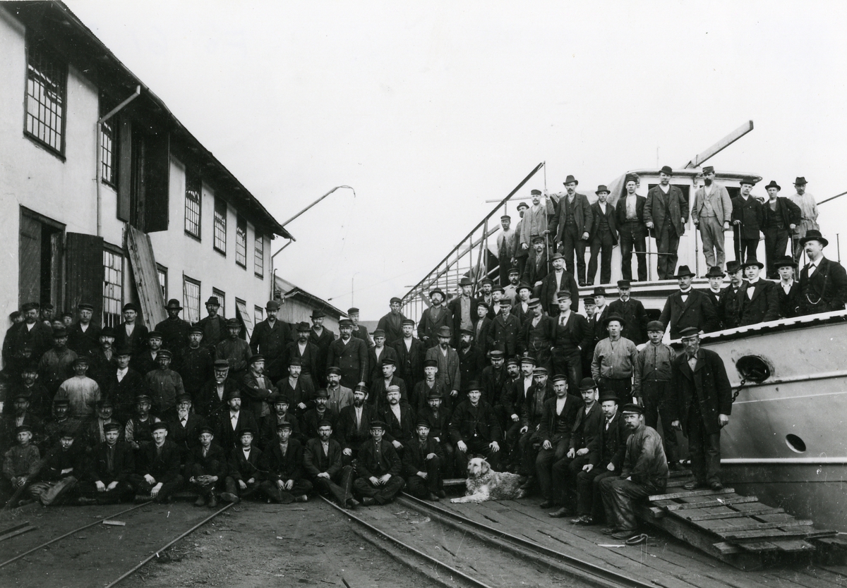 Mälarvarvets personal. Sjätte mannen från höger på fartygets back är ing. Hugo Schubert.