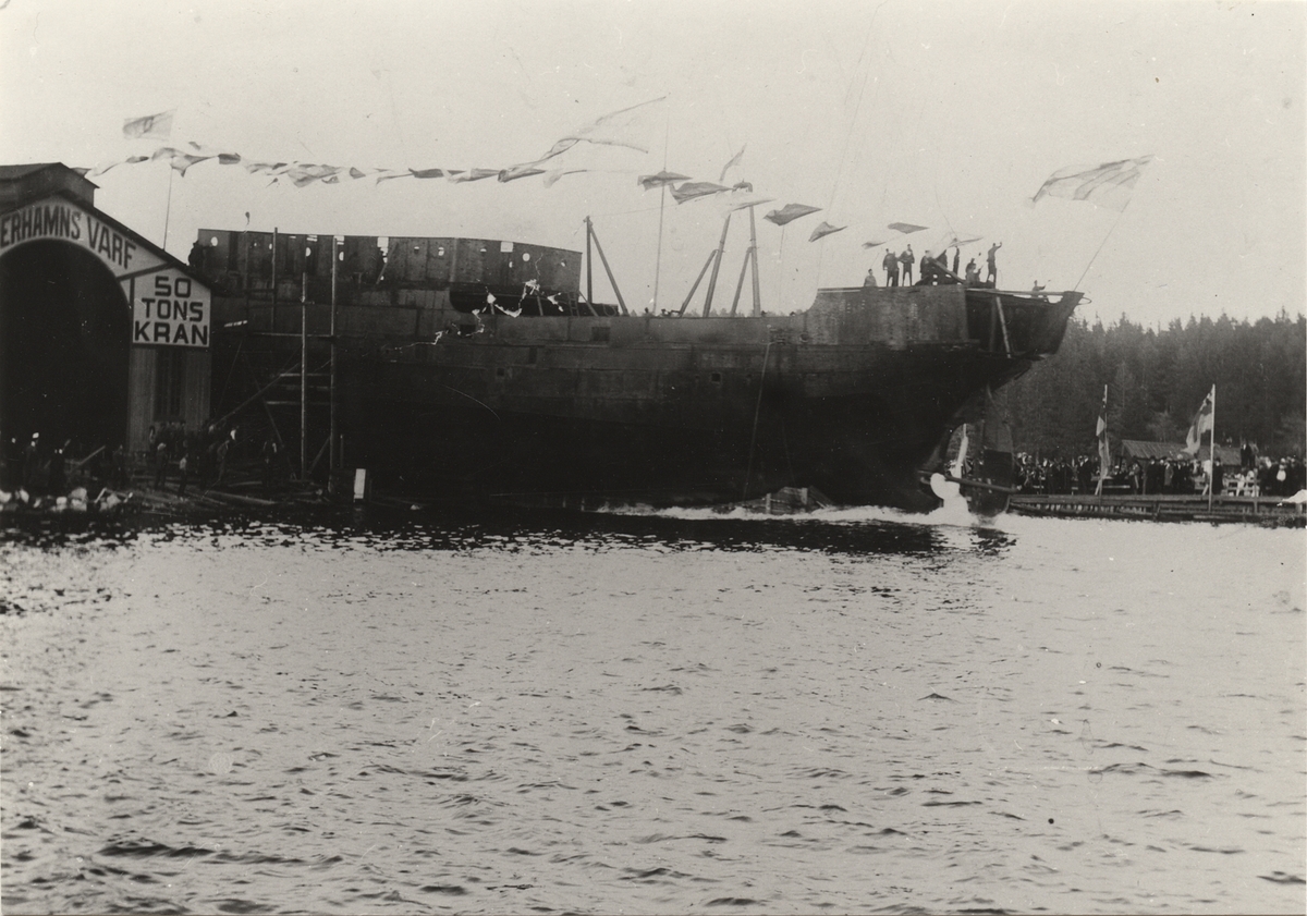 Söderhamns Varv, Söderhamn. S/S OLAUS OLSSON sjösätts 14 juli 1902.