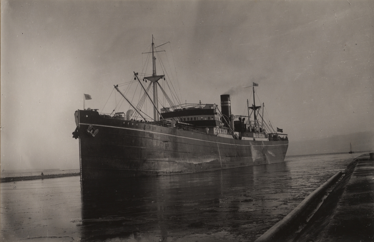 Lastångfartyget RENA av Tönsberg på ingående till Åhus 1922.