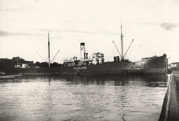 Lastångfartyget FALKLAND av Köpenhamn i Åhus hamn, augusti 1921.