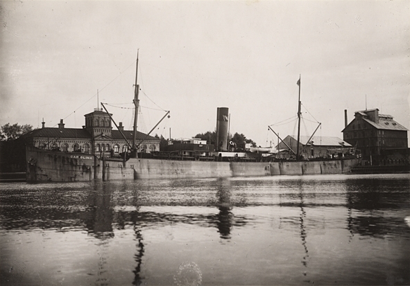 Lastångfartyget CAROLINA av Göteborg i Åhus hamn, den 29 augusti 1919.