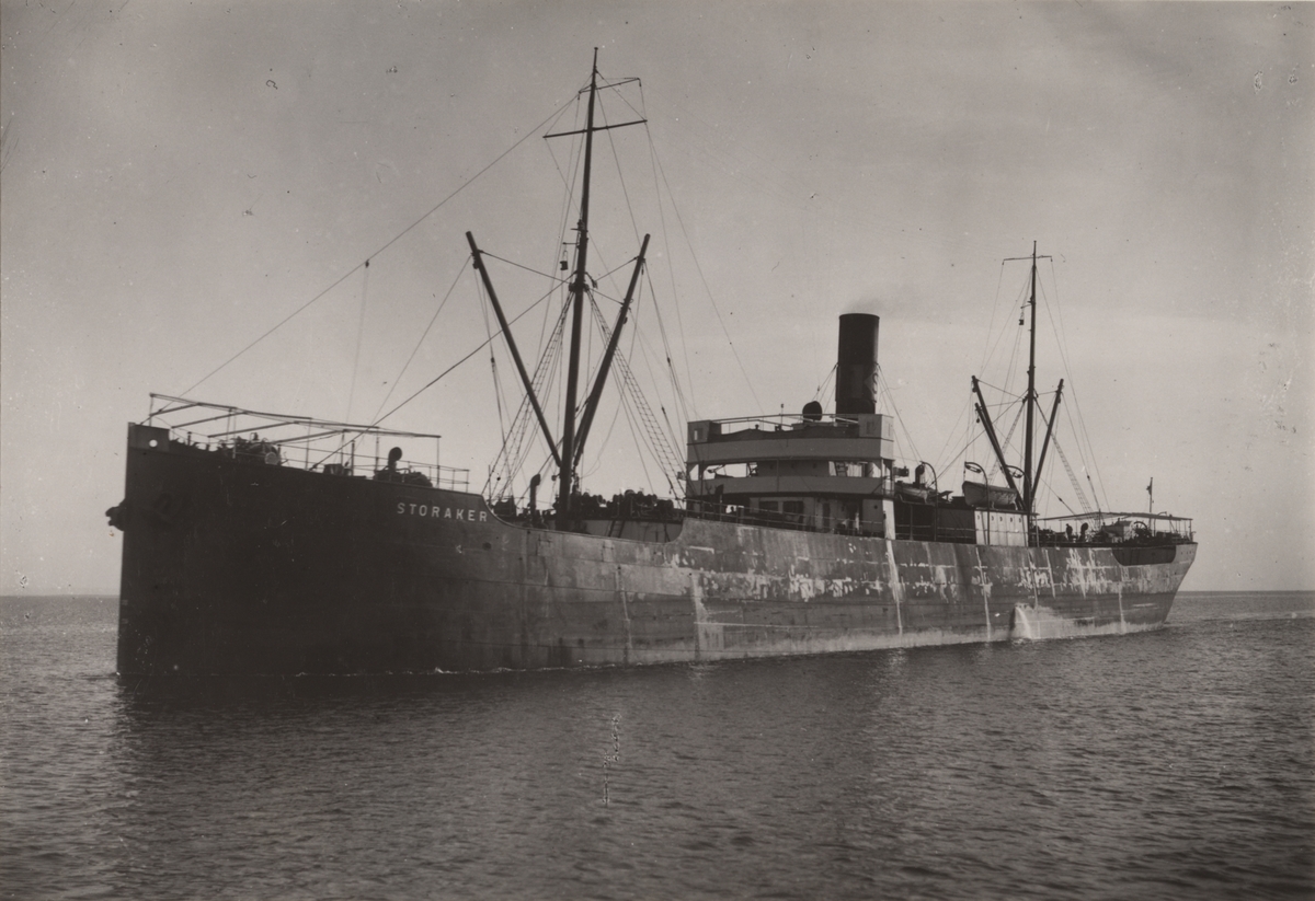 Lastångfartyget STORAKER av Kristiansand i Åhus hamn, augusti 1921.