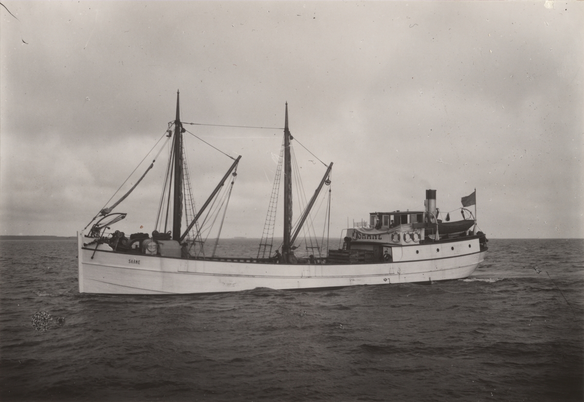 Lastmotorfartyget SKÅNE av Stockholm på ingående till Åhus den 30. september 1920.