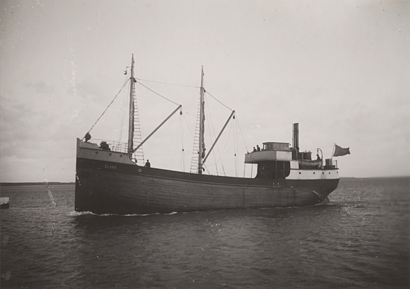 Lastmotorfartyget CLARA av Brantevik på ingående till Åhus, aug. 1921.