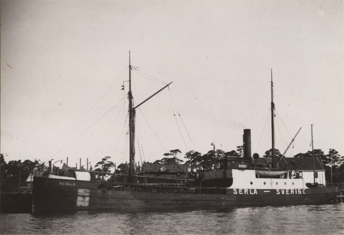 Lastångfartyget SERLA av Stockholm i Åhus hamn den 25 aug. 1918.