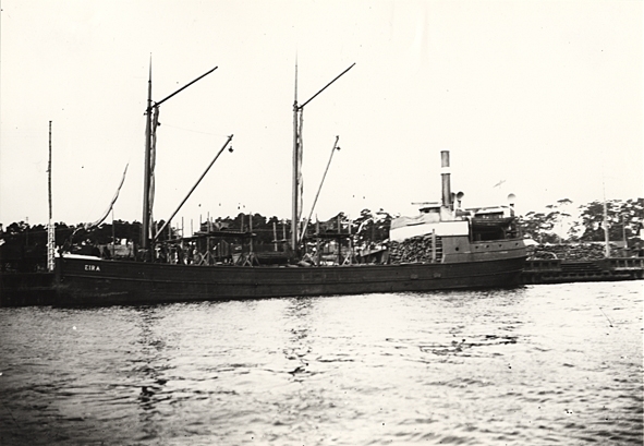Lastångfartyget EIRA av Stockholm i Åhus hamn, år 1919.