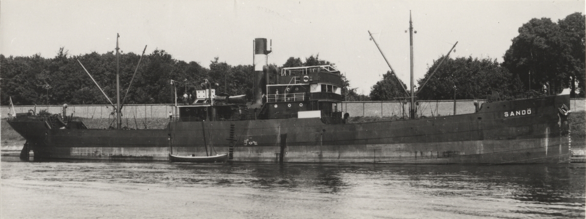 Foto från 1937 visande lastångfartyget "SANDÖ" av Stockholm.