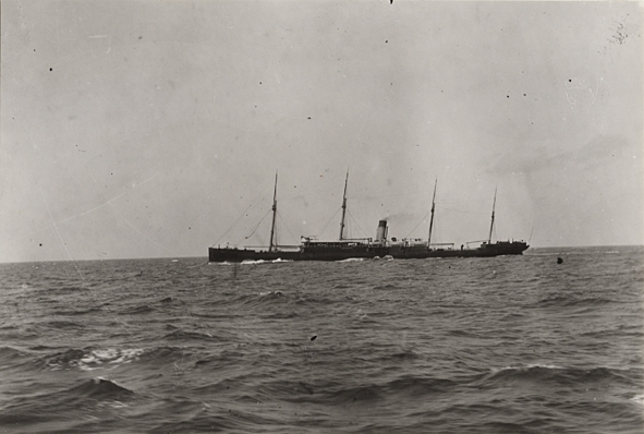 Last- och passagerarångfartyget CITY OF CAMBRIDGE i Biscaya, 1902. Skonertriggad.