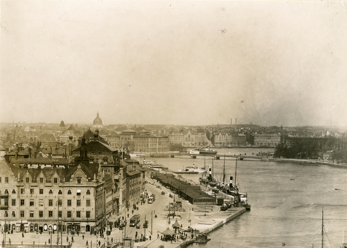 Skeppsbron i Stockholm fotograferat på 1910-talet.