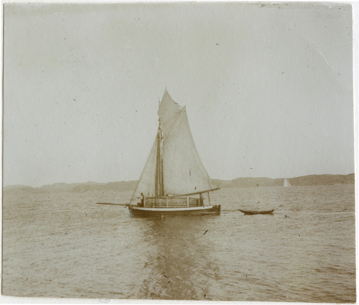 [från fotobeskrivningen:] "Jakt under segel, troligen med vedlast."