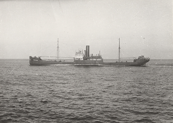 Tyska lastångfartyget S/S Amberstone under gång i Engelska kanalen i juli år 1948.