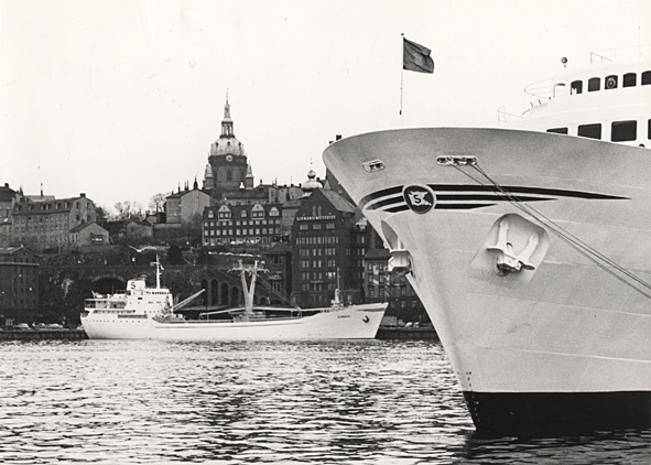 Lastfartyget m/s Gondul ivid kaj i Stadsgården, Stockholm 1964. I förgrunden m/s SVEA JARL.
