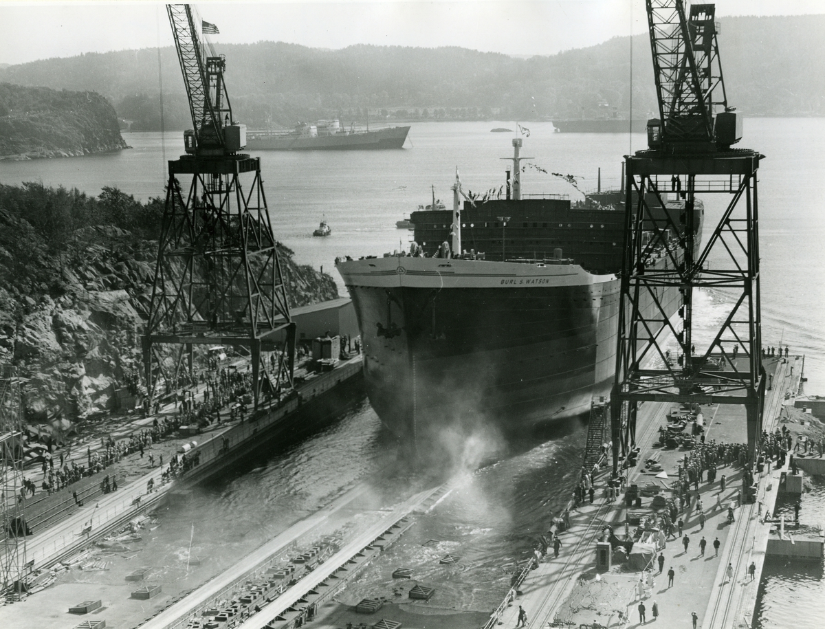 Sörviksvarvet i Uddevalla. Sjösättning av 68.000-tonnaren BURL S WATSON av Rotterdam den 15/9 1960.