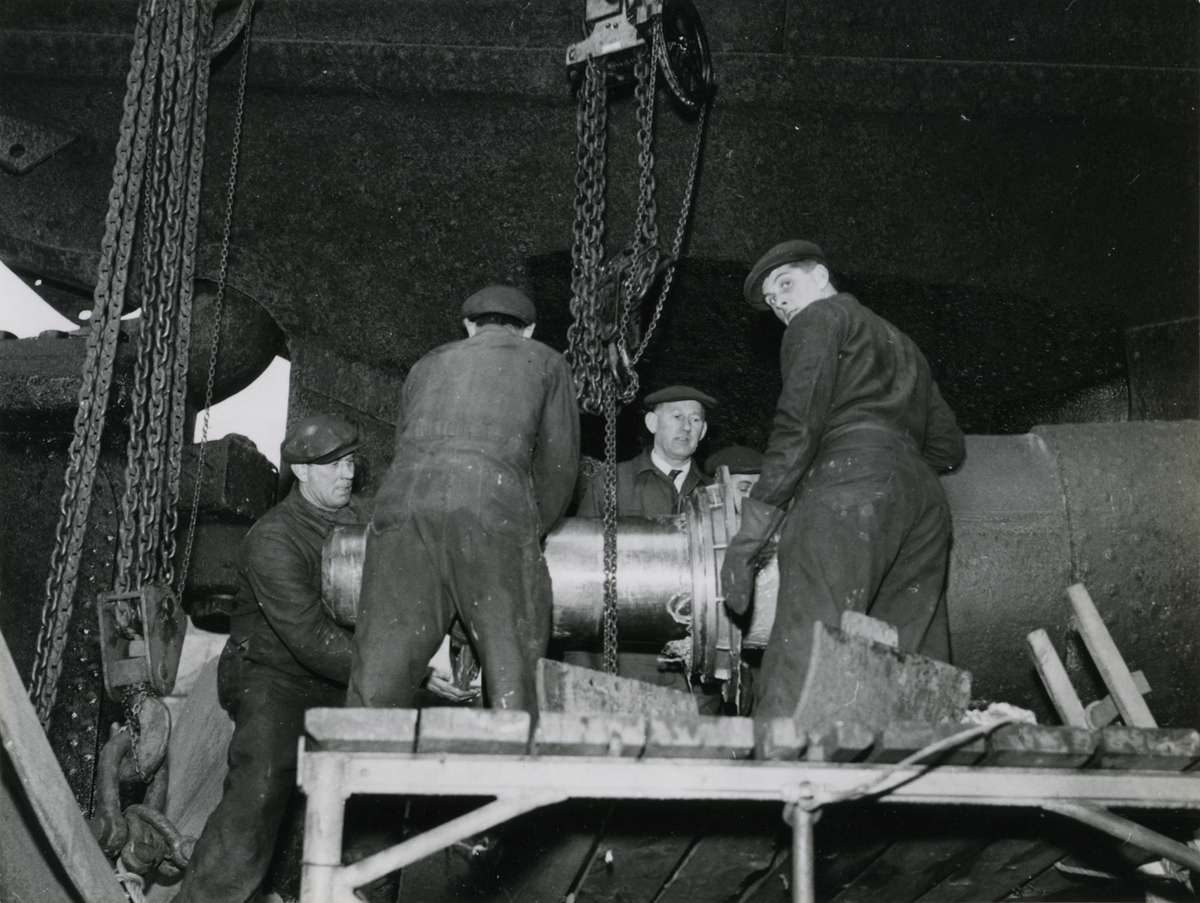 Arbete med propelleraxel till tågfärjan Starke 25.3 1954.