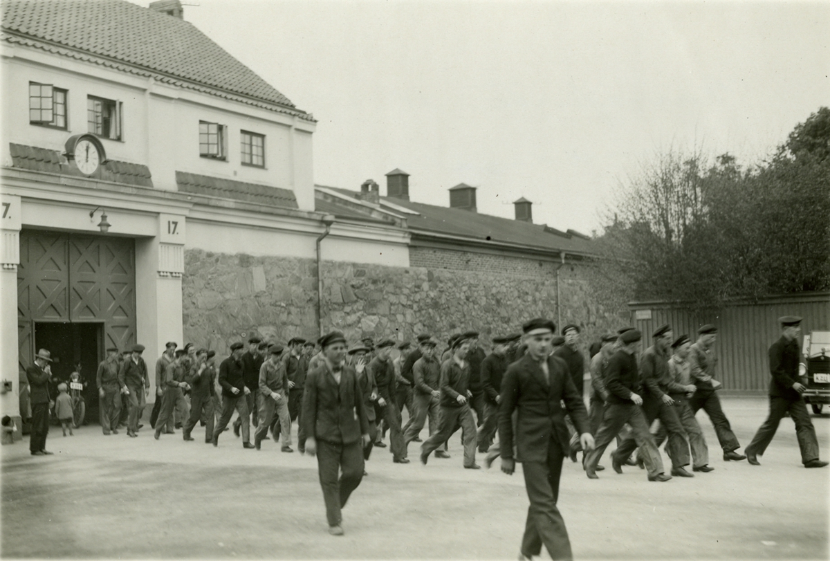 Varvsporten nr 17 och varvsarbetare vid middagstid 1930.