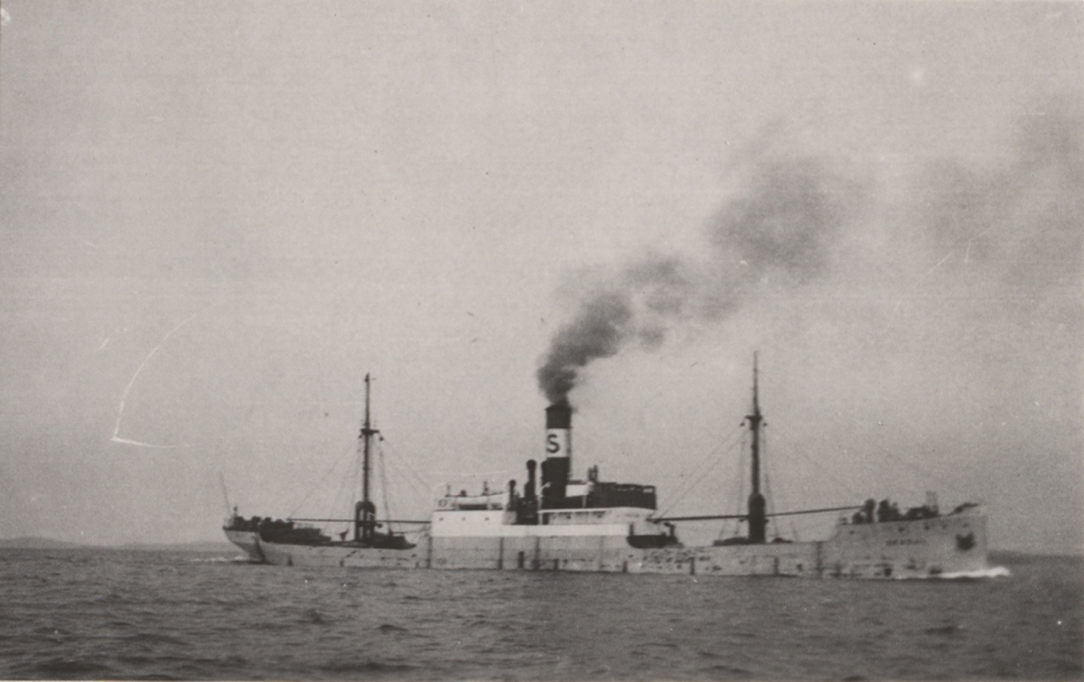 Titel: Lastångfartyget SKAGUL av Stockholm på Mysingefjärden 1933.