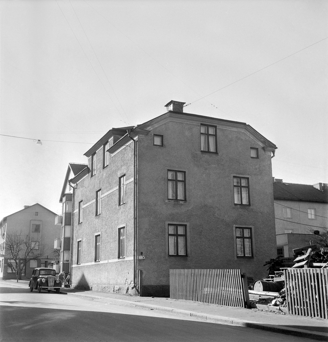 Skolgatan 19 i Linköping med en representativ huskropp för framväxten av stadsdelen Gottfridsberg från det sena 1800-talet. Foto 1950.