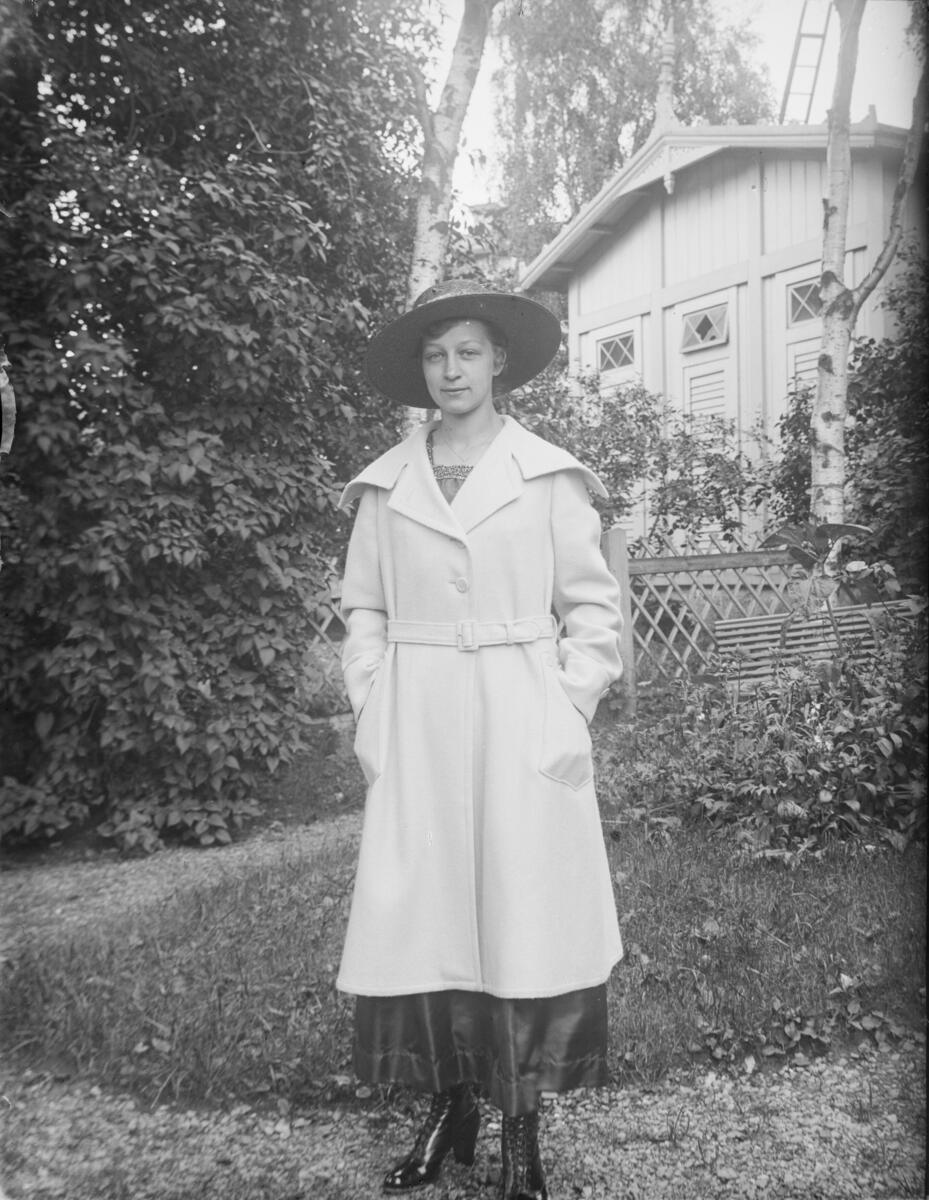 "Lina hemma i trädgården.1/2 s. f. 18. 25/8 1918. 13:40?, slöjad sol.Espi."