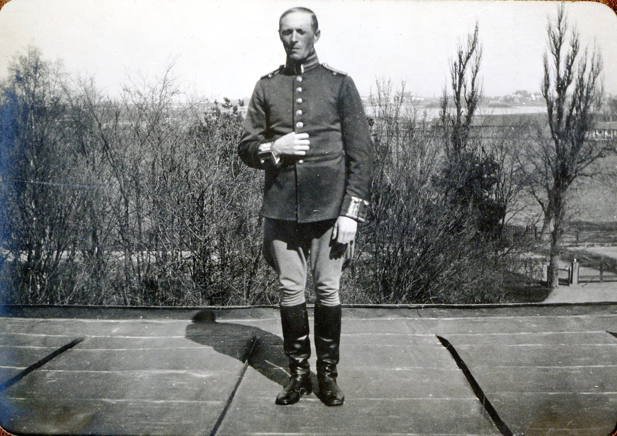 Titel: Oidentifierad officer på ett tak. Kalmar regemente.