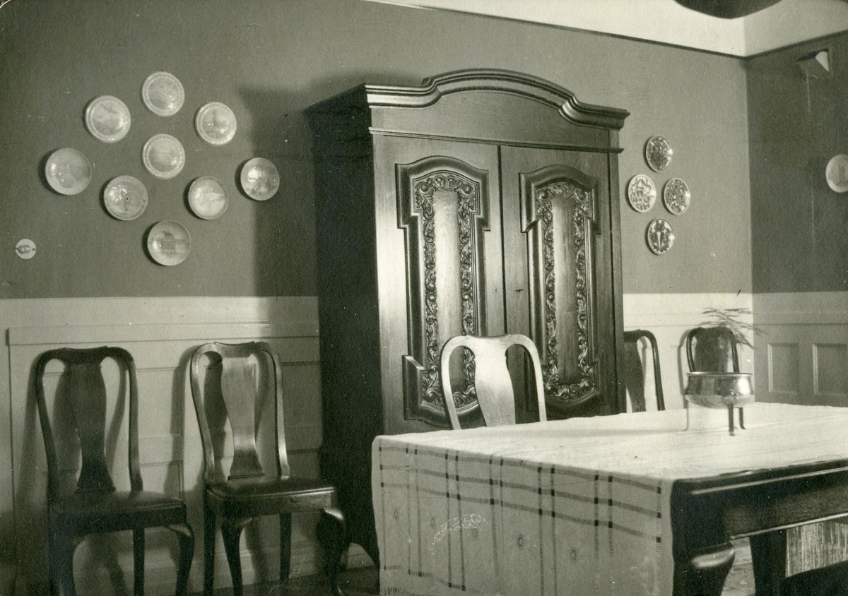 Titel: Matsal med tallrikar på väggen. Hultsfred? Kalmar regemente.
