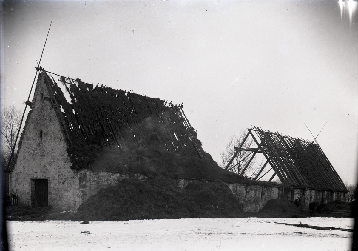 Bild 1165. Närs prästgårds lada med taket under rivning