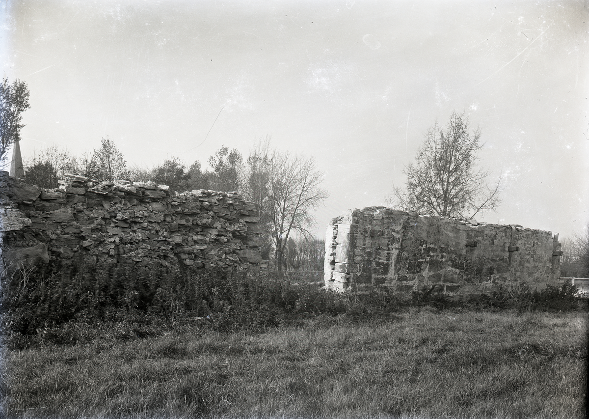 Bild 1178. Närs prästgårds lada, kvarstående mur väster, från öster